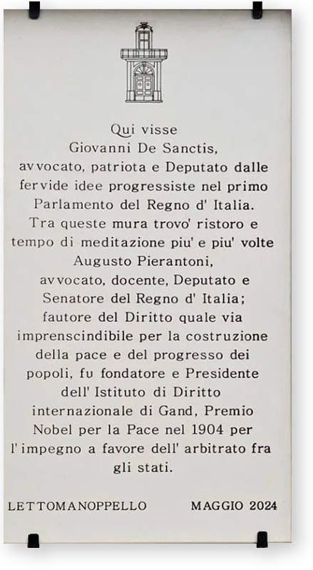 La Fondazione Palazzo De Sanctis – APS ETS è un’associazione di promozione sociale senza scopo di lucro, con sede a Lettomanoppello (PE). Nasce con l’intento di custodire e promuovere la memoria storica, politica e culturale del Palazzo De Sanctis, luogo simbolo del pensiero liberale e patriottico dell’Abruzzo ottocentesco, e delle personalità che qui hanno elaborato idee e pensieri di spessore: Giovanni De Sanctis e Augusto Pierantoni.